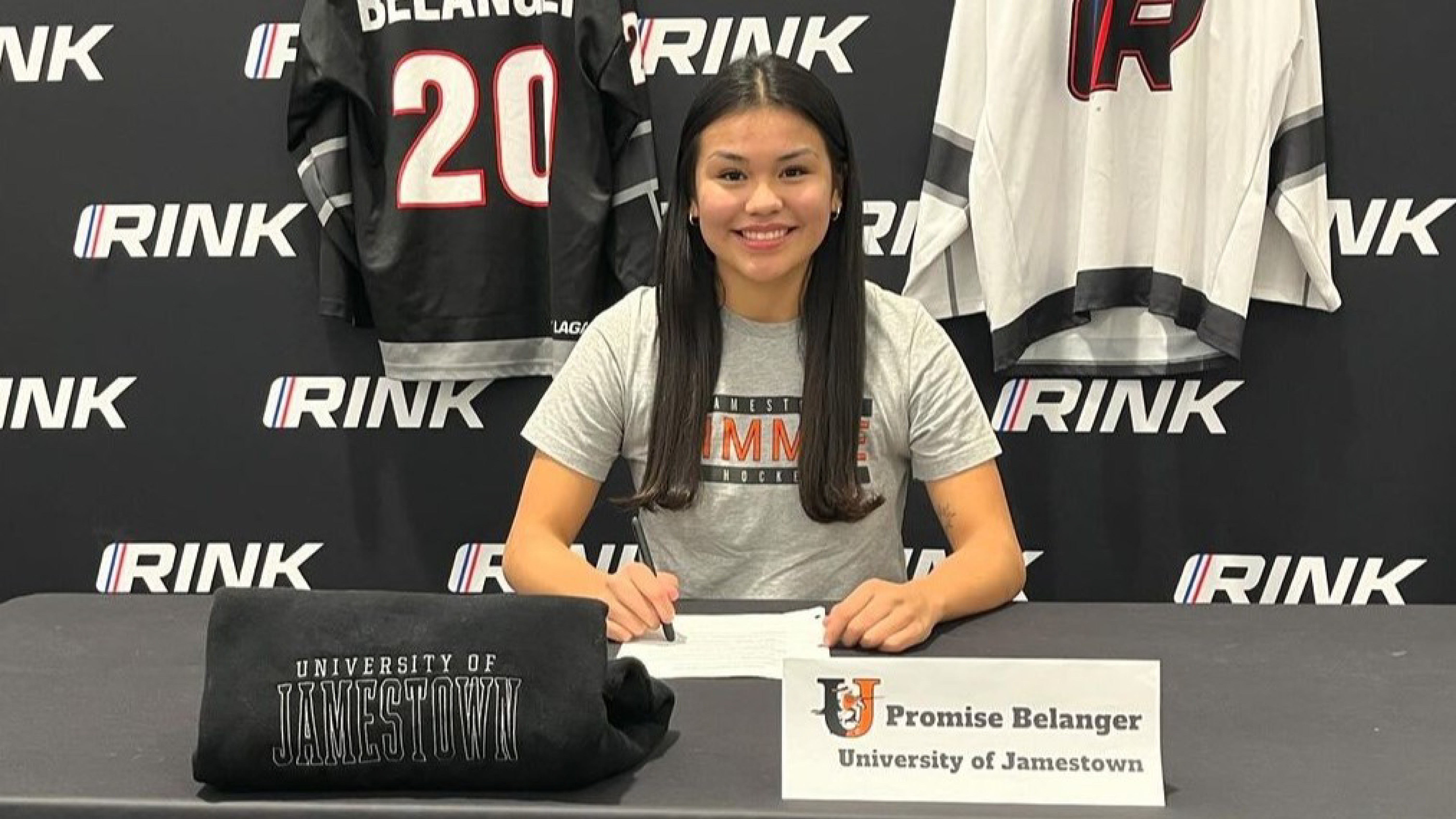 This season with the RINK Hockey Academy's Female U18 team, Promise Belanger put up 6 goals and 14 assists for 20 points in 29 games played. The Yorkton, Saskatchewan product announced her commitment to play at the University of Jamestown in North Dakota.