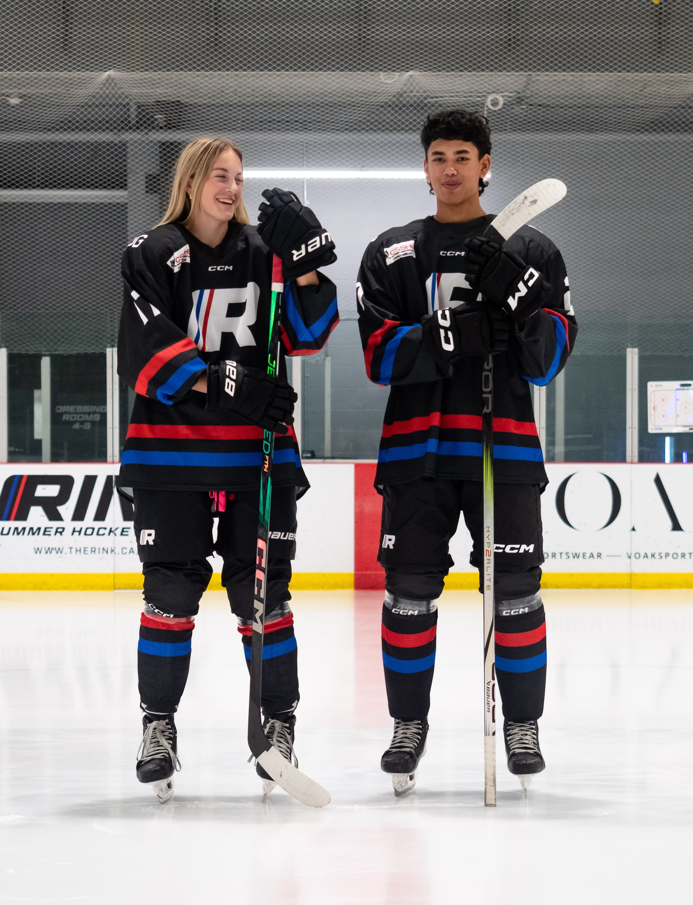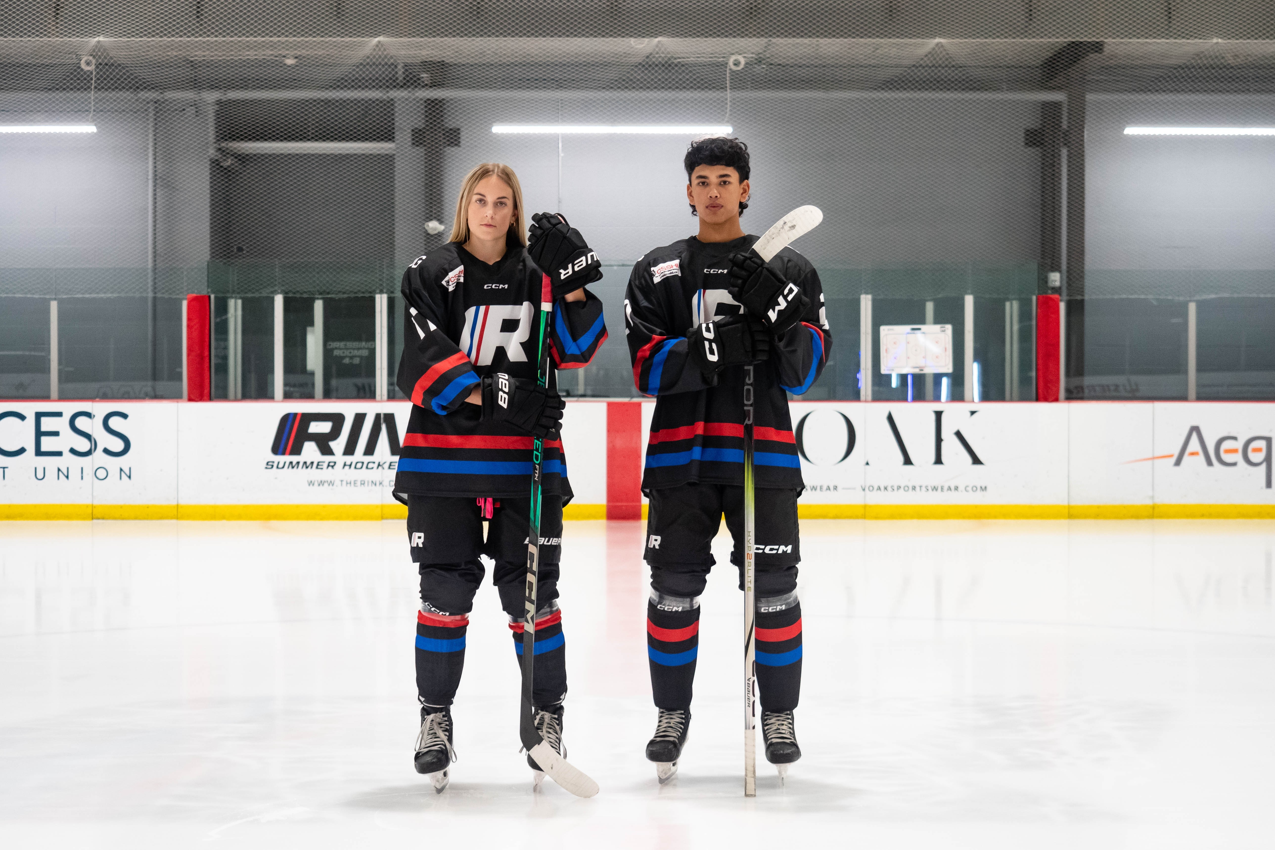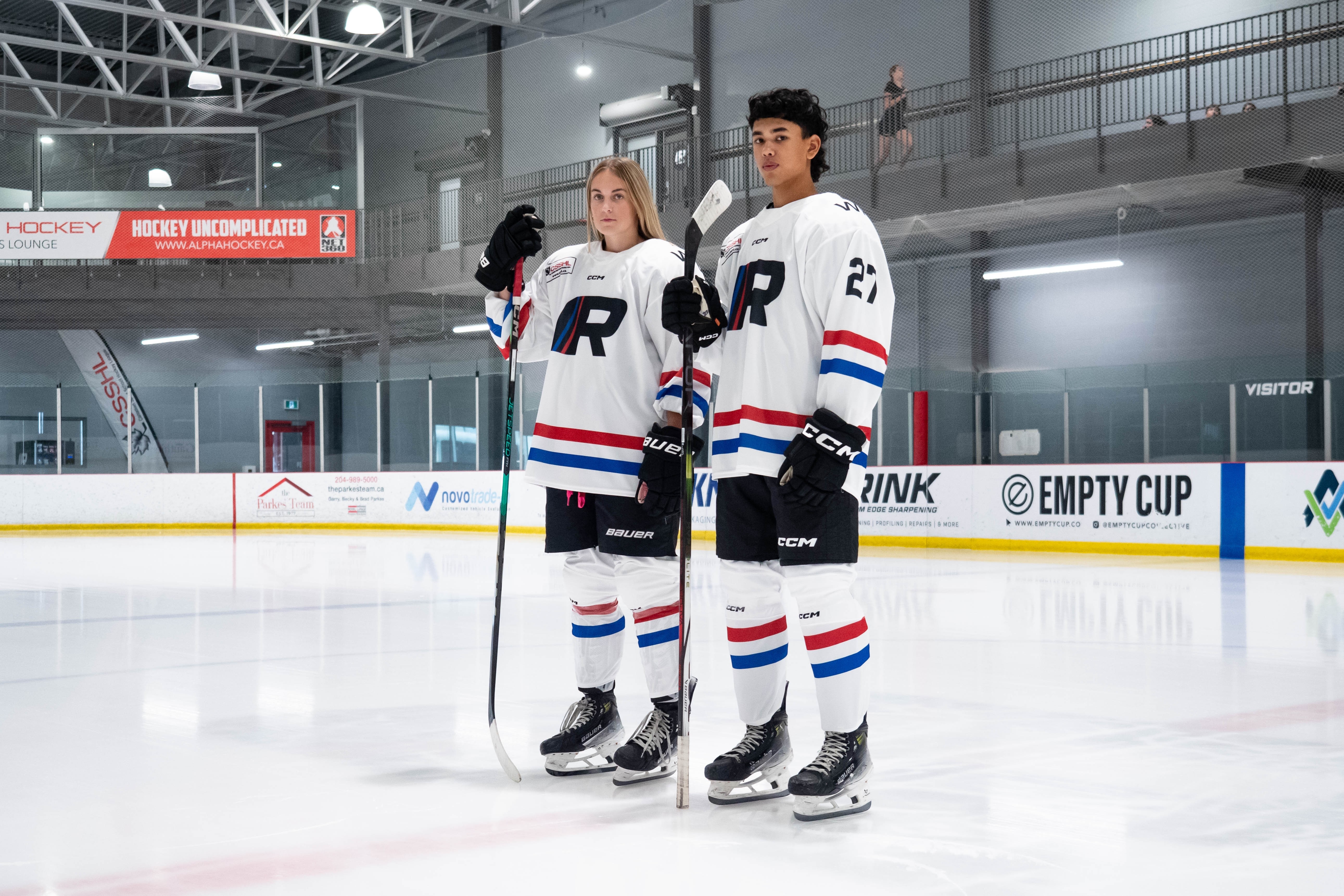 RINK Hockey Academy Winnipeg is excited to reveal its new, streamlined jerseys for the upcoming season. The redesigned jerseys feature prominent red and blue stripes that mirror the academy’s logo, creating a unified and recognizable look.